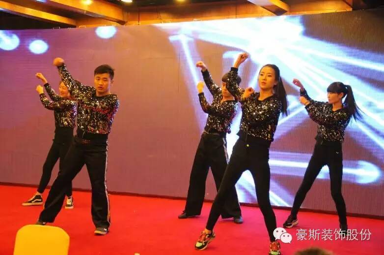 在主持人激情洋溢的主持声中,豪斯装饰“2016新跨越 新梦想·豪斯20周年感恩盛典”历时3个多小时,融合了舞蹈、歌曲、相声、情景剧等多种形式,以朱海淀女士独唱的《好日子》开场,预示2016红红火火;