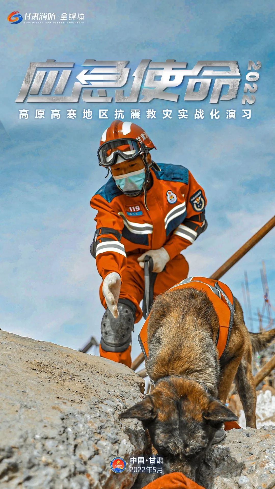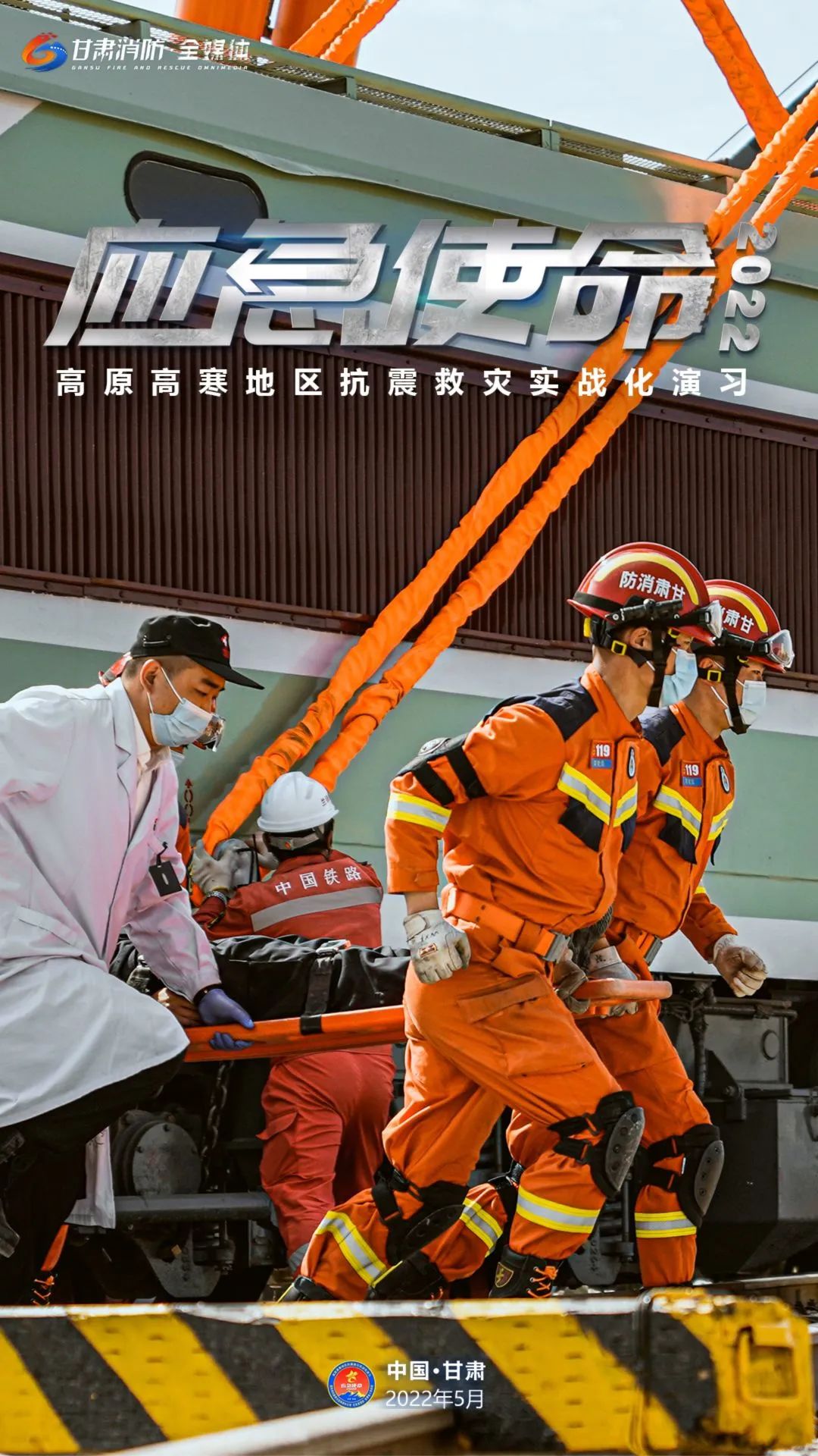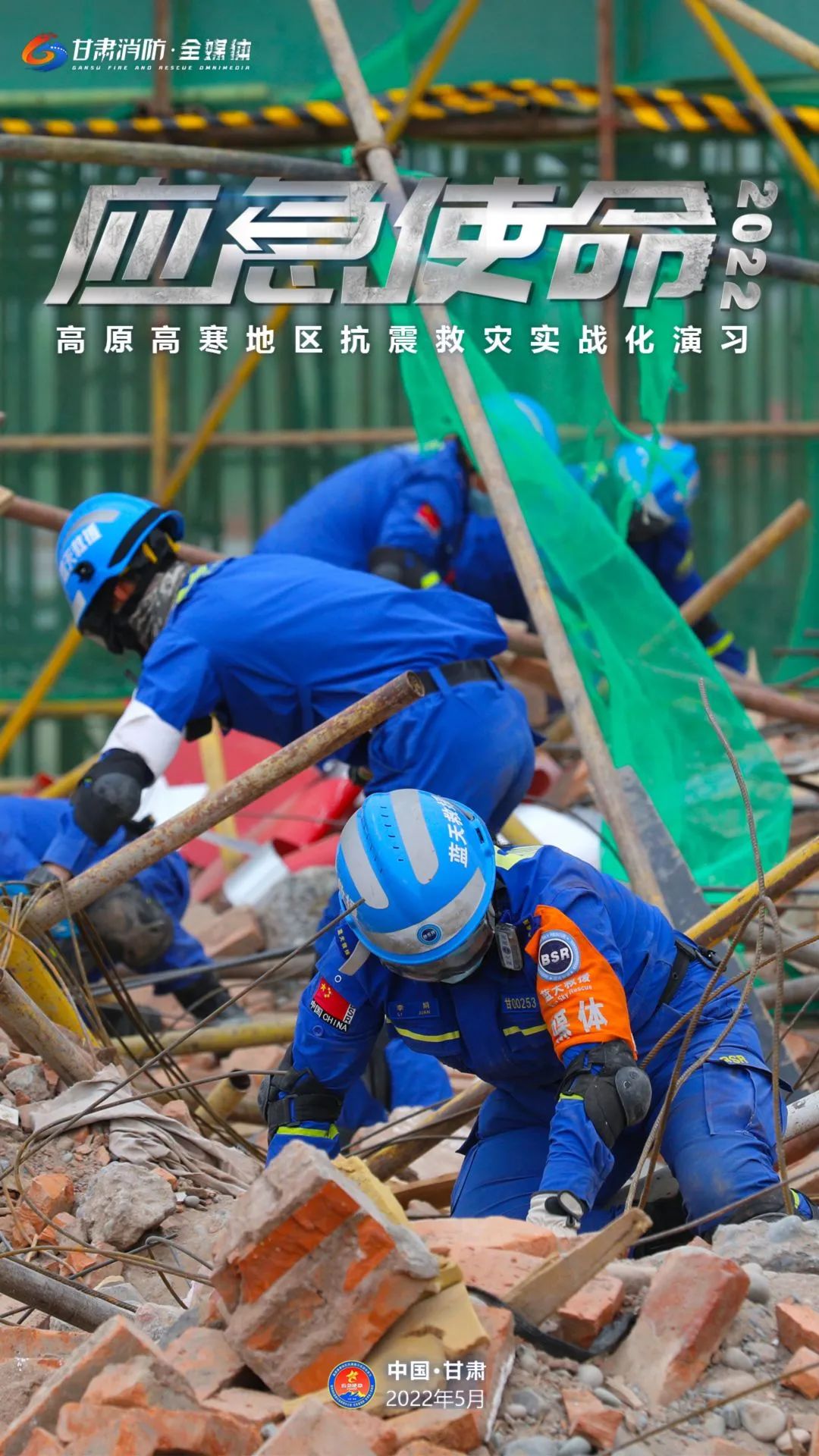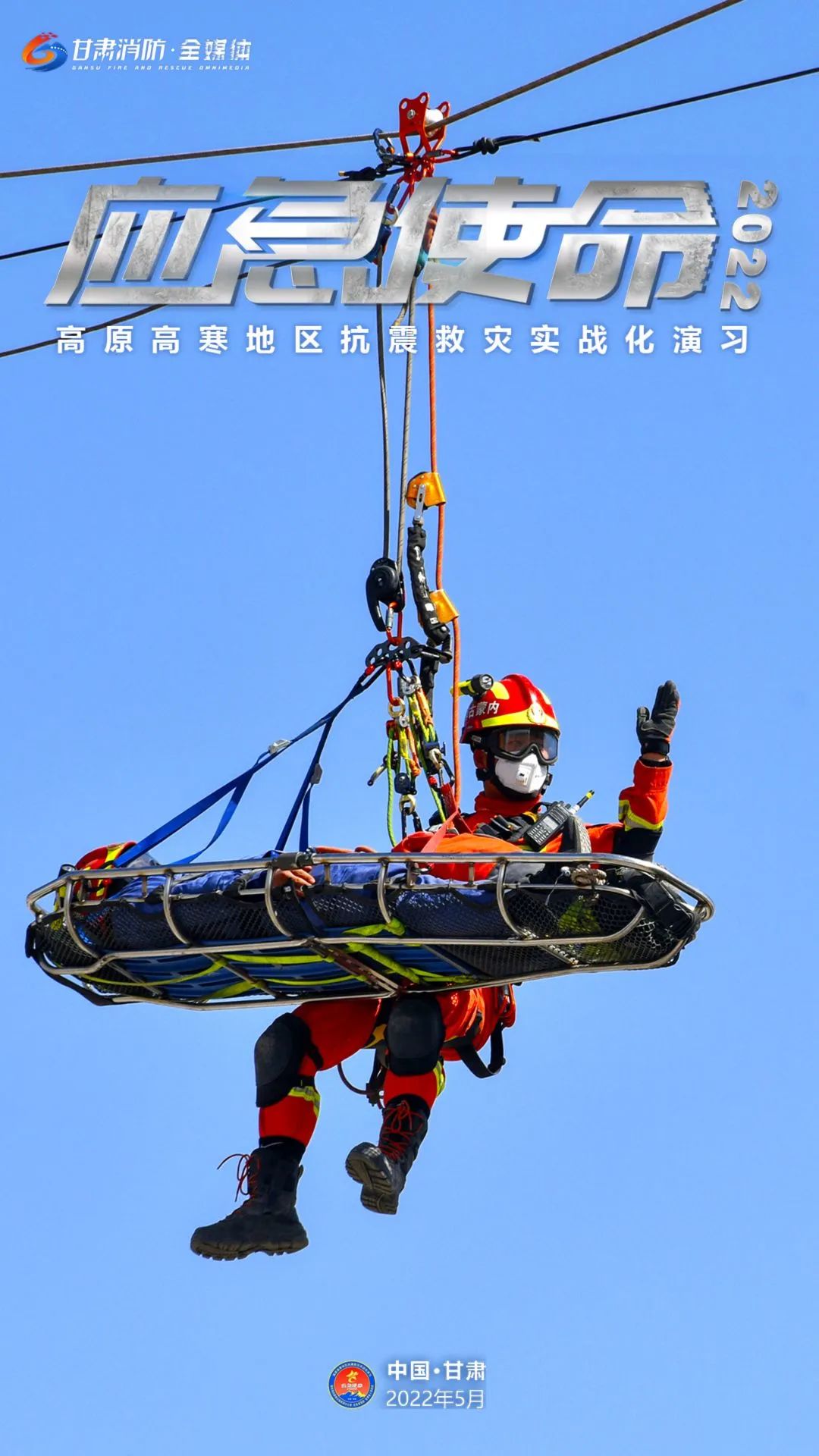 5月11日上午,国务院抗震救灾指挥部办公室、应急管理部、甘肃省人民政府在甘肃省张掖市等地联合举行“应急使命·2022”高原高寒地区抗震救灾实战化演习。(甘肃消防)