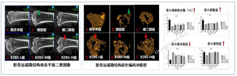 性激素水平降低会引发骨质疏松,特别是绝经期的女性。研究发现,采用双侧卵巢切除建立大鼠早衰模型,给予八子补肾或雌激素。模型组小鼠的骨密度显著降低,骨小梁体积分数、数量和厚度降低,骨小梁分离度增加;而八子补肾组的骨密度有不同程度改善,表明八子补肾胶囊可以促进骨合成,抑制骨分解,提高骨强度,增加骨密度。