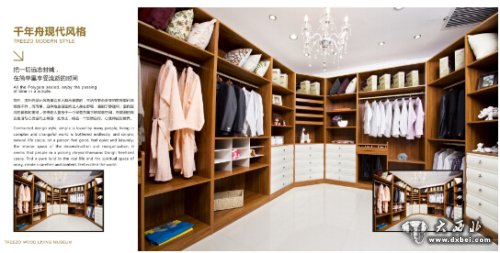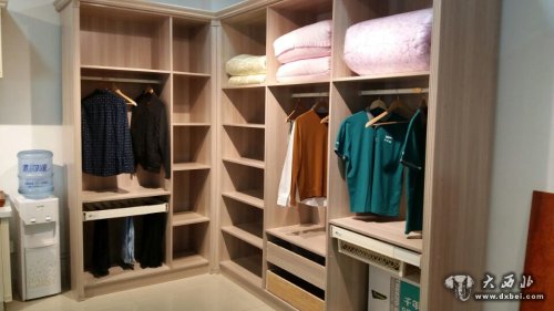 整个展示厅内,更引人驻足欣赏的就是服务台两侧的整体酒柜、衣柜和橱柜了。这不仅是崭新的成品,而且每个柜体上都摆放了相应的物件,这让顾客不仅直接体验到由千年舟板材生产的柜子是什么样的,还让顾客感觉到眼前的柜子就好像已经搬回了自己的家里一样那样真切。