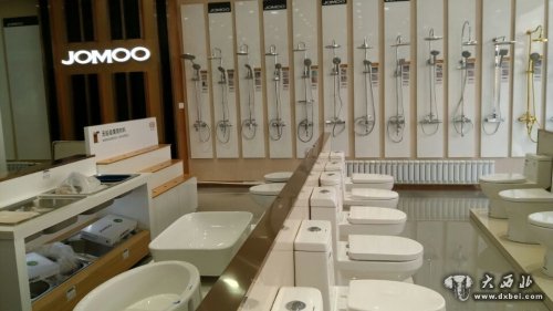 走在北龙口装饰建材城二楼中区北端的街区上,“九牧——厨卫管家中国高端卫浴领导者”的字眼和LOGO格外显眼。