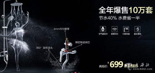 比如,九牧还可以实现淋浴节水50%。这源自九牧创造的空气能技术。据这项技术利用水流流出在花洒腔内产生的负压作用,由喷洒面板将空气吸入并与水混合在一起,空气增压,出水澎湃;水汽混合,触感轻柔。节水50%,原来洗一次澡的水,现在可以洗两次。