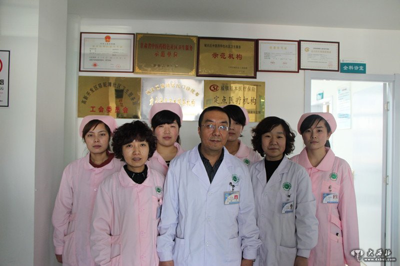 兰州市高新区骆驼滩社区卫生服务站赵元彪院长(前排中间)及其医护人员合影