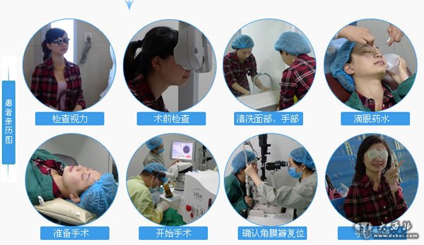 手术过程:制作角膜瓣、激光切削(切削过程几十秒钟,请务必注视闪烁红灯),冲洗复位,完成右眼,接着做左眼。具体操作过程如下: