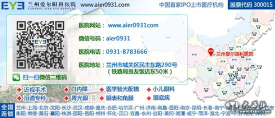 【温馨提示】:如果您有更多近视或眼科问题需要咨询医生,请拨打兰州爱尔眼科医院24小时咨询预约电话:0931--8783666、18919179853与在线医生交流或登录医院官网http://www.aier0931.com网上预约服务!前来就诊时可以凭短信或预约号直接就诊,我们会提前确定您的信息,提前为您安排专家,更快更好地为您服务,节约您的就诊时间。