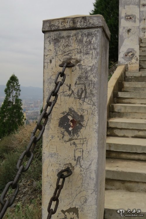 兰州国学馆踏步护栏和两边树木上的涂鸦6