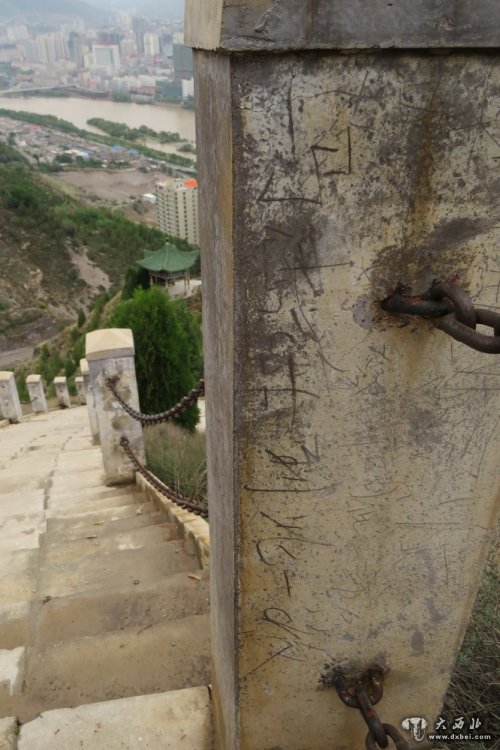 兰州国学馆踏步护栏和两边树木上的涂鸦7