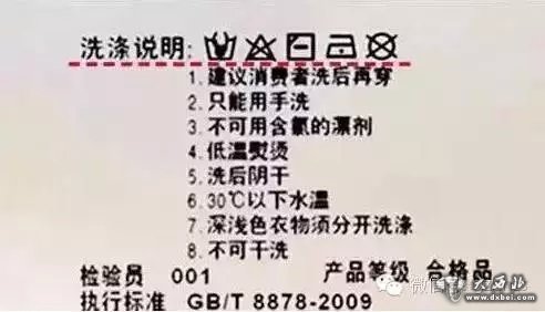 洗涤标识须按照洗涤、晾晒、熨烫等顺序标注;如果衣服吊牌上没有洗涤说明,或是洗涤说明顺序标注不正确,很有可能是因为生产厂家不正规,建议不要购买。