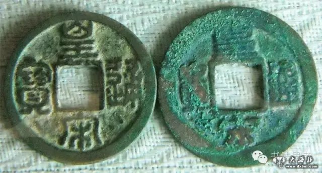皇宋通宝,中国古代钱币之一。北宋仁宗赵祯,宝元二年至皇祐末年(公元1039年~公元1053年)铸,非年号钱。钱文有篆书,楷书对钱,光背。有小平、折二两种,有铁钱。篆书中另有九叠篆者,极其罕有,为古泉大珍。