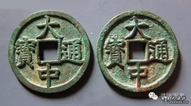 元楷书“大中通宝”钱。元末朱元璋为吴王时所铸,钱文端庄。元末社会动乱,纸币支持的经济体系严重破坏,元境内各地先后恢复了铜钱的流通。六支反元军事集团先后发行了自己的铜币,如韩林儿的“龙凤通宝”钱,张士诚的“天佑通宝”钱,明玉珍的“天统通宝”钱,以及朱元璋“大中通宝”钱。