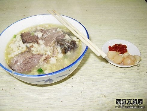 这就是春发生的葫芦头,通俗的说是大肠泡馍,大肠煮的很烂,一点也不腻
