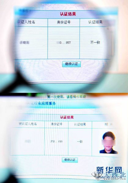这是1月9日记者在绝牛网上查询的个人信息。上图为记者故意提供了一个错误的个人信息,查询结果为不一致。下图为记者提供了一个正确的个人信息,查询结果为一致。 新华社记者 李文 摄