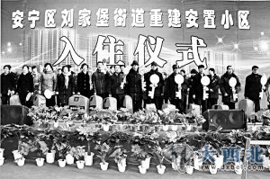 “ 呵呵,今天终于拿到新房钥匙了,我们也能像城里人一样住进宽敞明亮的楼房了......”刘家堡社区居民刘成刚乐呵呵地说。昨日,安宁区刘家街道重建安置小区锣鼓喧天,鞭炮齐鸣,拔地而起的十几幢安置楼房,在彩旗的映衬下格外醒目,广大拆迁户欢天喜地,一同来到入住仪式现场,共同见证他们盼望已久的好日子。据悉,刘家堡街道重建安置小区占地248亩,总建筑面积43万平米,总投资15亿元为兰州市城中村改造的首个市场化运作项目。记者 张小燕 文/图