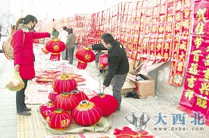 贴春联是过年的一项重要内容。在雁滩南河南路年画售卖集中区,记者看到,很多市民在仔细比较、选购。“过春节年画、对联必不可少,这几天都开始买年画了,生意也好了许多。”卖对联和年画的摊主乐呵呵地说。