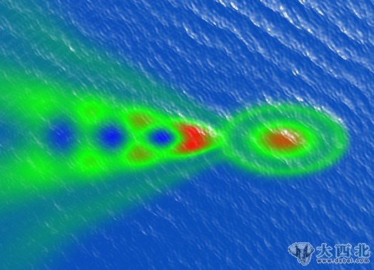 水下航行的潜艇仍然能够暴露自身的位置。物体在水下运动时会在海水表面产生突起的水丘,这一现象被称为“伯努利水丘”(上图红色区域),即便潜艇在水下1000英尺的深度航行,依然可以被探测到。任何水面舰艇、潜艇在航行时都会产生V形尾流(上图绿色区域),这一现象被称为“开尔文尾流”,该尾流同样能够在海水表面探测得到。液体隐身衣能够消除“伯努利水丘”和“开尔文尾流”所带来的影响。
