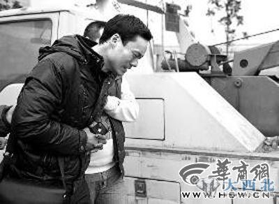 走出交警队,朱贤存站立不稳,不时哭泣 李晖摄