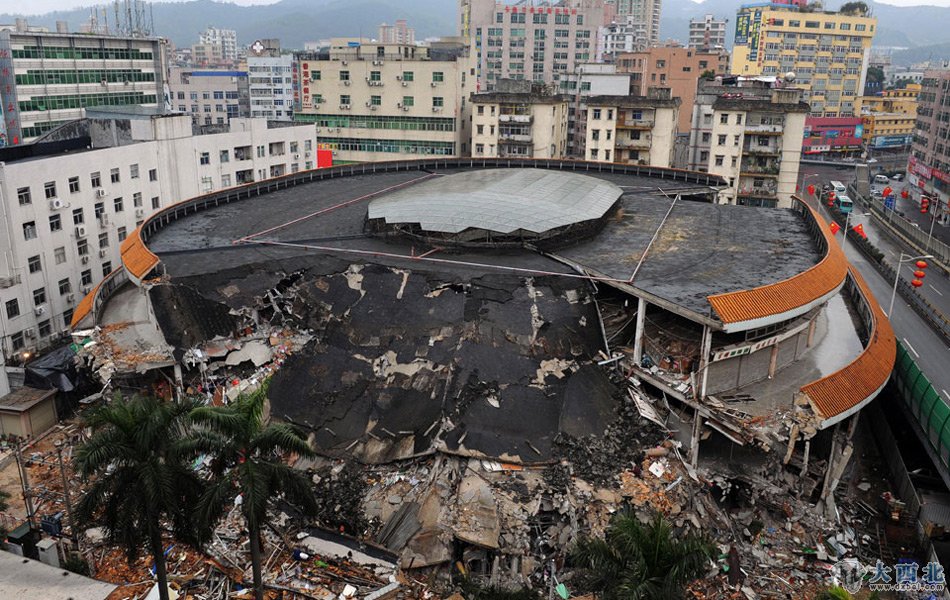 遭遇除夕爆竹掩护强拆的布吉综合市场墙体坍塌。