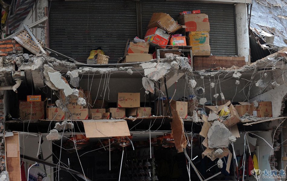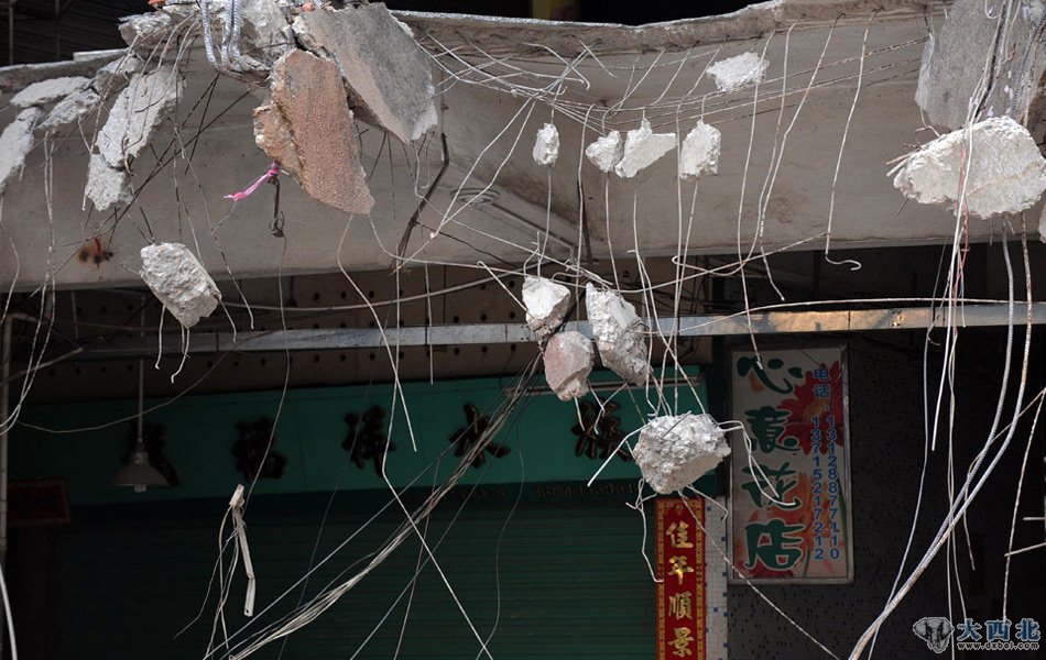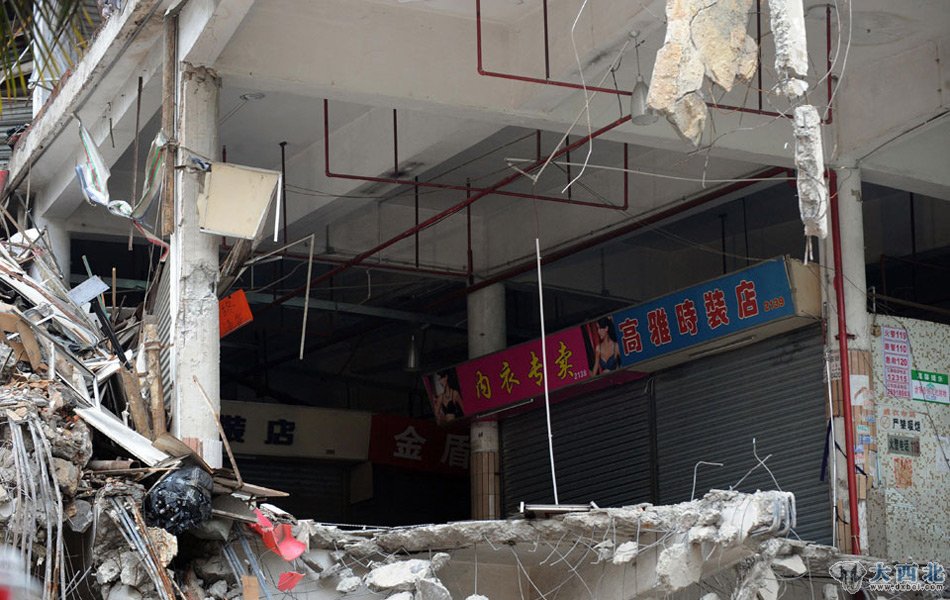强拆后的墙体内部还留着很多商户的货物等物品。