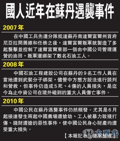 韩章良说,“叛军暂时离开后,我们开始集中所能找到的人员,最后只找到18人,这说明另外29人被叛军劫持了。我们这18人都集中躲在营地外面的一个小树林。”他说,经过中苏双方的大力营救,我们有17人终于脱险。令人遗憾的是,我们18人中有一人被流弹击中,迄今下落不明。30日下午,我们和副营地拉希德的20名员工一并由苏方平安护送到北科尔多凡首府欧拜伊德。
