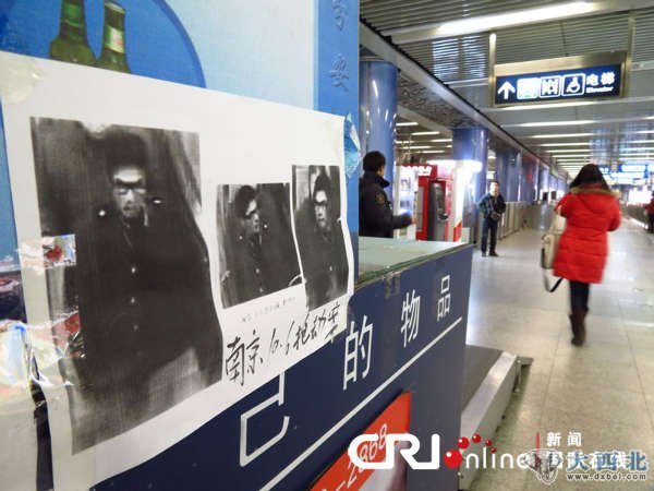 2012年1月31日,北京地铁四号线车站内安检机上张贴南京抢劫案嫌疑人新照片。