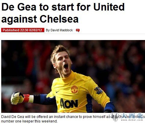 英国媒体《镜报》称,花了将近2000万英镑签下的德赫亚,曼联肯定不希望这笔巨款打水漂,目前德赫亚急需自信心,所以西班牙人必须有要踢更多的比赛,而非目前将其冷藏;还有一点是本赛季英超联赛对切尔西的第一回合,在老特拉福德球场,德赫亚就在这场比赛中首发,而且表现还不俗,正是他的高接低挡,帮助曼联主场3-1击败切尔西。《镜报》称,因生病缺席曼联主场2-0击败斯托克城比赛的德赫亚,铁定会在曼联客场战切尔西的比赛中复出,而这次复出不是仅仅坐在替补席上的,而是作为正选球员打比赛的。