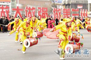 鑫报讯 龙腾虎跃闹新春,金城兰州喜洋洋。昨日是农历壬辰龙年正月初十五元宵节,在这个喜庆的节日里,来自兰州市各县区的7支社火队伍,齐聚东方红广场,参加在这里举行的“金龙闹春”第十届兰州春节文化庙会闭幕式暨2012新春社火展示活动。数千人的庞大社火表演队伍,吸引了数万市民云集在东方红广场,一睹精彩的社火表演。