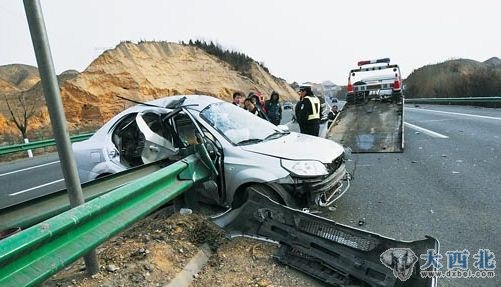 据兰州晨报报道:2月17日上午9时50分许,一辆由白银开往机场方向车号为甘D·69575的雪佛兰轿车,途经青土岘隧道以西2.3公里处时,飞速撞断路中隔离带,并擦向东行路面快速驶过的尼桑轿车尾部。在隔离带的拦截下,轿车拦腰被折成“V”字形,车内5人不同程度重伤。截至记者发稿时,其中两人仍未脱离生命危险。目前,甘肃省交警总队高速巡警支队树屏大队正在调查事故原因。
