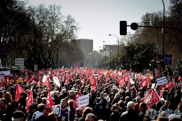 人民网马德里2月19日电 (记者丁大伟)在西班牙工人委员会和全国总工会的组织下,19日西班牙57个城市举行了大规模示威游行活动。截至记者发稿时,当天西班牙全国参加示威游行活动的总人数尚未公布。但据活动组织者发布的数据,巴塞罗那、巴伦西亚和阿利坎特三地的游行人数分别达到了40万、10万和3.5万人。