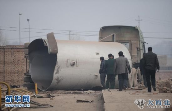 记者在事故现场看到,爆炸将罐体炸为几截,尾部被爆炸的巨大冲击力推至距离现场约50外的水塘内,另一截罐体被炸裂后扭曲变形。