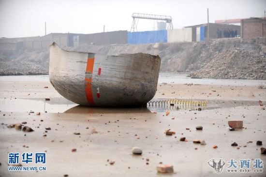 这是发生事故的槽车尾部被炸飞至50米外的水塘内(2月20日摄)。 新华社记者张锰摄