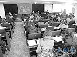 为进一步提高涉外宾馆饭店的接待能力和服务水平,全面提升城市形象,更好地为经济发展服务。兰州市公安局出入境管理处近日举办了全市境外人员住宿登记培训班。培训班上,出入境管理处民警就境外人员住宿登记常识、接待常用英语、境外人员住宿登记信息录入等相关知识进行深入浅出的讲解,并解答了提出的疑难问题。来自全市65家涉外宾馆饭店的前台接待人员及各分、县局外事民警120余人参加了此次培训。