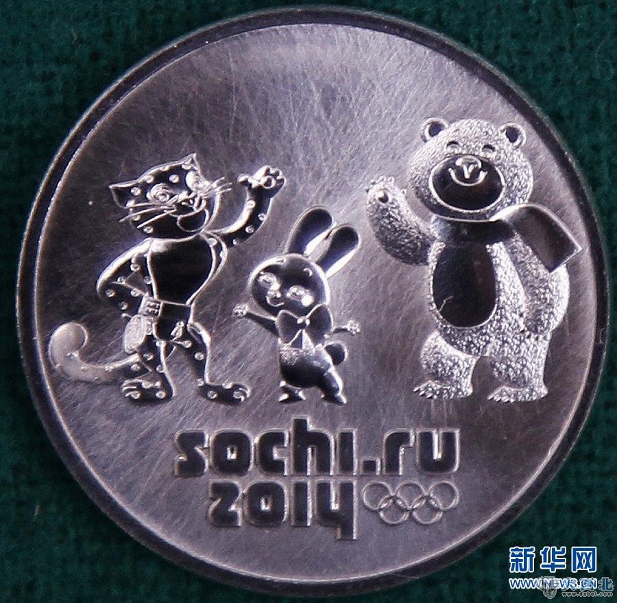 2月21日,俄罗斯银行在圣彼得堡发布2014年索契冬奥会系列纪念币。图为2月21日拍摄的印有索契冬奥会吉祥物的纪念币。 新华社/路透