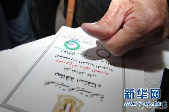 2月26日,在叙利亚首都大马士革,一名老人在选票上按手印。当地时间26日上午7时,叙利亚开始就新宪法草案举行为期两天的全民公投。叙利亚全国共设立了14185个投票站,年满18岁的叙利亚公民均拥有投票权。公投结果将于27日宣布。 新华社发(哈泽姆 摄)