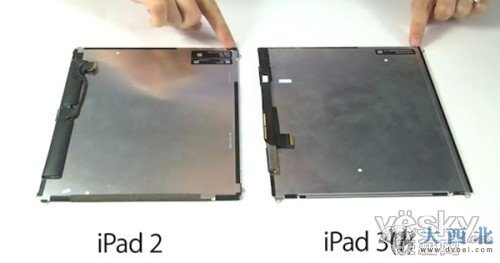iFixit测量显示这块显示屏的分辨率横向和纵向都是iPad 2显示屏的2倍