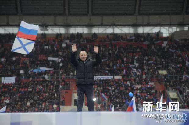 资料图片:2月23日,在俄罗斯首都莫斯科,俄罗斯总理普京出席支持者集会。新华社/俄新社