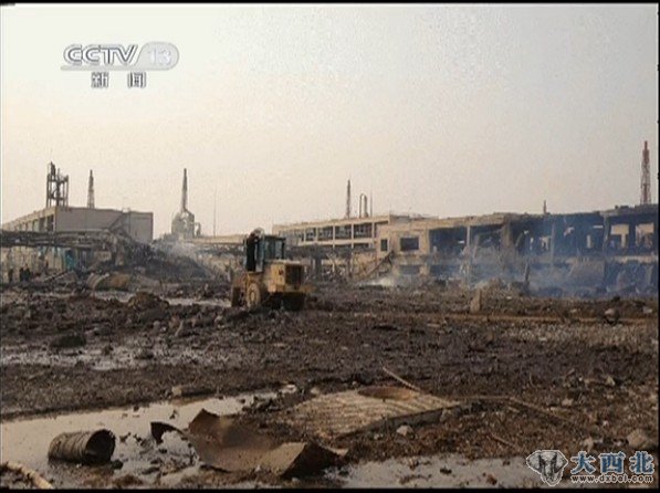 一间厂房被夷为平地(央视截屏)