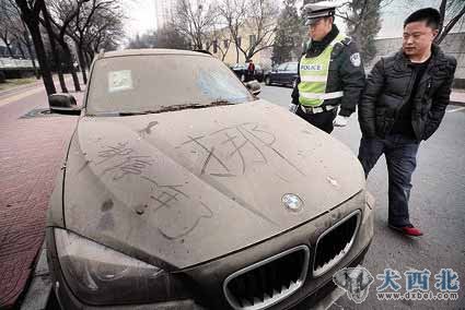 这辆落满灰尘的宝马X1在网上有些名气,其照片近日发到网上后,有“知情”的网友调侃称,该车为某大款送给央视一主持人的,但对方没收,大款就把车丢弃在路边。