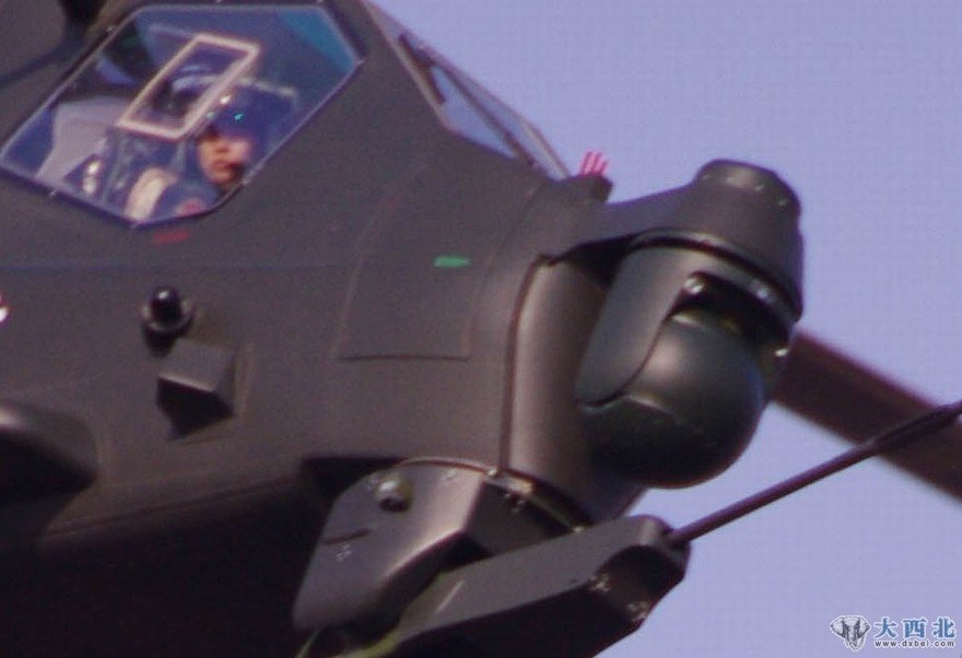 资料图:从图片上看到了武直-10的高科技细节。武直-10不但使用了头盔瞄准系统,机身上还载有非常先进的装备。(来源:环球网)