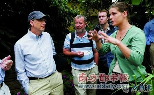 援助非洲的化学工程师凯瑟琳(右)在向比尔·盖茨(左)介绍情况。