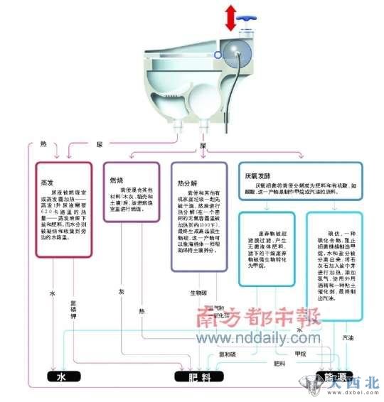 在得到了基金会的资助后,科学家们正在使用包括蒸发、燃烧、热分解和厌氧发酵分解在内的各种方法,试图把马桶废物分解成三种基本资源:水、肥料和能源。