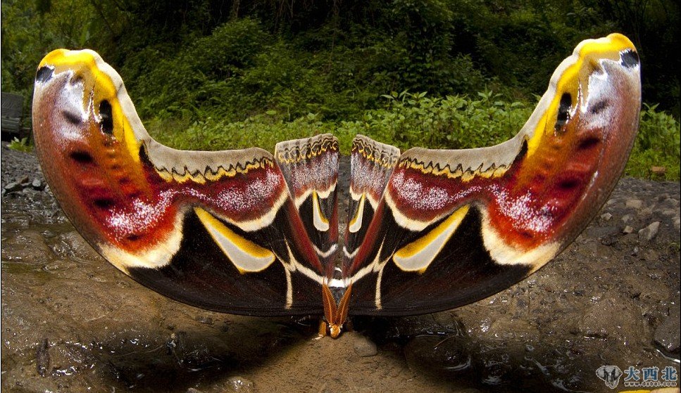 乌柏大蚕蛾(Attacus)又名阿特拉斯蛾(Atlas),被认为是世界上最大的蛾子,一般生活在热带和亚热带地区的雨林中,尤其常见于马来群岛。当卡杜尔发现它时,它正静静地呆在印度东北部的一条公路上。卡杜尔被眼前这个“巨无霸”吓了一跳,于是壮着胆子慢慢靠近它,并把它引到公路边开始为它拍照。