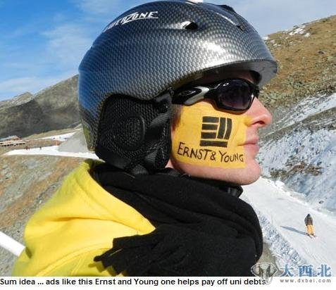 据英国《太阳报》3月5日报道,英国剑桥大学2名颇有创意的大学生通过在自己脸上印商标给企业打广告的方式盈利,来偿还学生贷款。他们打算将这一计划持续366天,而仅155天内就赚得了3.1万英镑(约合人民币31万元)。
