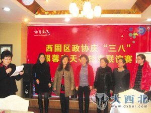 日前,为迎"三八"节,由政协兰州市西固区委员会主办,西固区妇联、西固区体育局、甘肃银馨春天餐饮服务有限公司协办的"第一届银馨春天杯扑克牌大赛"在我市西固区银馨春天酒店拉开帷幕。西固区政府、区人大、区政协、区妇联、区教育局女职工和当地部分女企业家60多人参加了比赛。这场最终由银馨春天餐饮服务有限公司承办的娱乐性赛事,虽然只有短短的半天时间,但欢笑与快乐却贯穿始终,活动在"三八"节前夕为所有参赛人员都留下了一段最为欢快的时光。刘婷/文