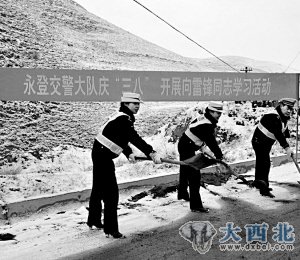近日,兰州忽然下起大雪,路上积雪深厚,湿滑难行,给行车安全带来一定的危险。为了给过往车辆提供安全便利的条件,消除安全隐患,3月8日9时许,永登交警大队组织女民警和警嫂,冒着严寒,在辖区永窑公路事故多发路段撒防滑沙,过往的司机纷纷鸣号致意,表达对民警的无限感激之情。