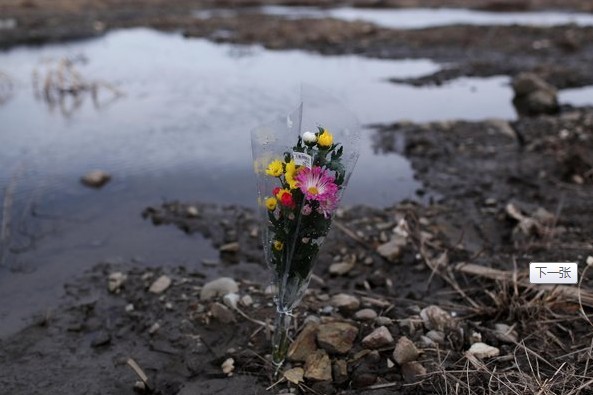 2012年3月10日,日本陆前高田市,民众给遇难者献花,该地区的旅馆被遇难者亲朋好友住满。