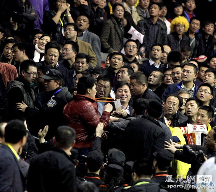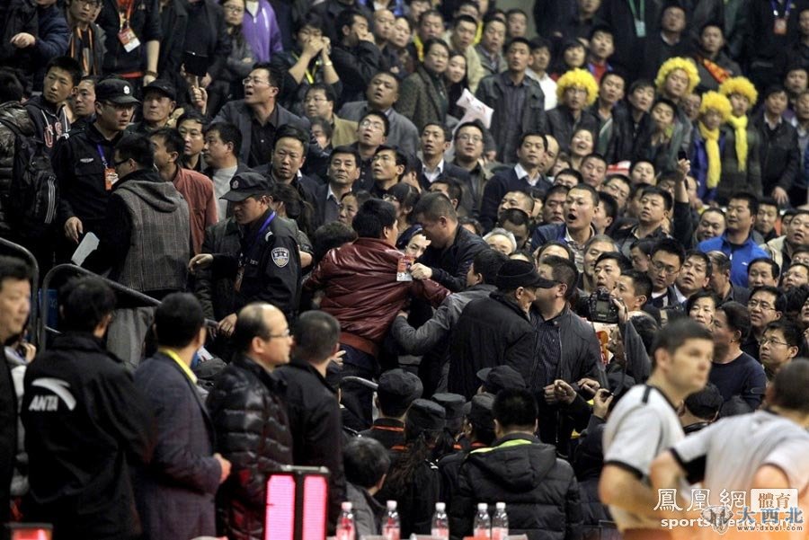 2012年3月11日,2011-2012赛季CBA联赛季后赛半决赛第4场,山西球迷赛后围攻北京队大巴。