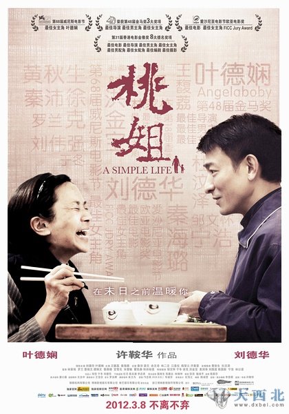 《桃姐》亦是如此。老龄化严重,新移民热潮,住房资源紧张,电影业萎靡,到处都是香港这座浮城所面临的问题。许鞍华这位已过耳顺之年的女导演依旧用镜头静静记录下柴米油盐方方面面,不动声色地旁观真实生活,正如影片英文名“A Simple Life”所预示的那样,一切都很简单。