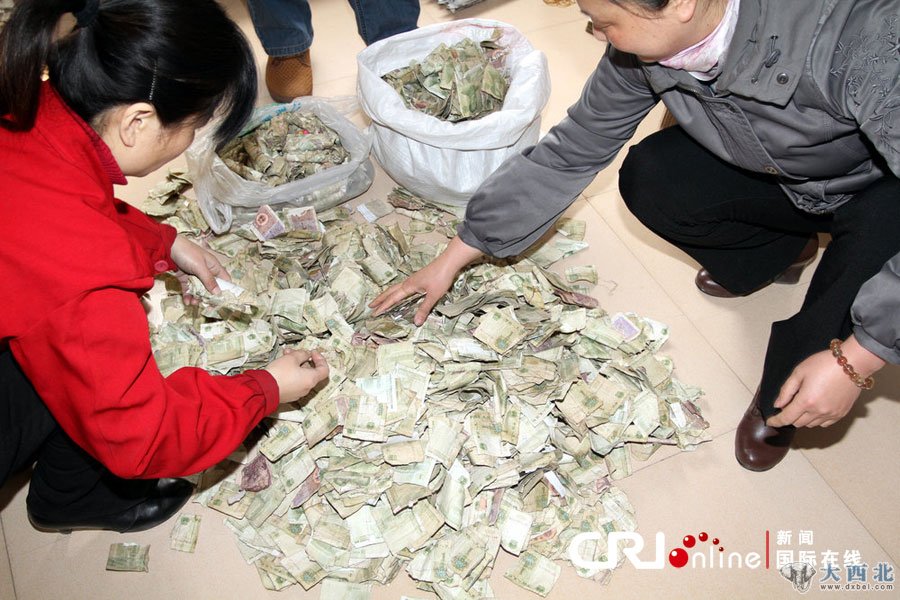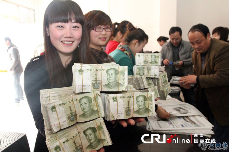 2012年03月14日,河南省商丘市,市公交公司员工在领工资,12年来一直是领零钱。