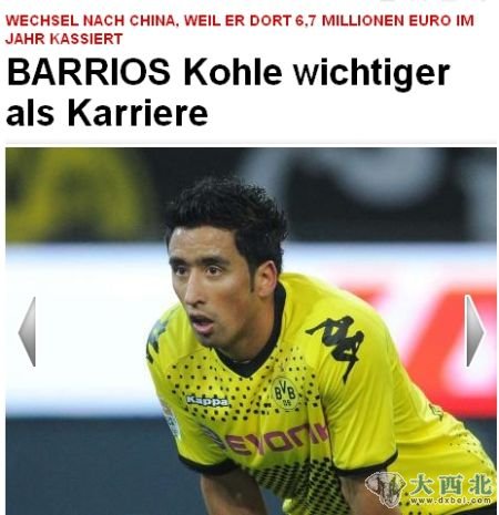 《图片报》在报道中写到:虽然27岁的巴里奥斯几乎可以选择整个欧洲的顶级球队,或者留在多特蒙德参加明年的欧冠联赛,但是对于这位巴拉圭前锋来说,金钱比事业更加重要。巴里奥斯与多特蒙德的合同将在2015年到期,他的转会费至少将是1200万欧。在为多特蒙德出战的80场德甲联赛中,巴里奥斯打入了36粒进球。在加盟中超后,巴里奥斯的进球应该会更容易一些。巴里奥斯本人在谈到转会问题时并没有予以正面回答,而是表示:“我现在完全专注于为多特蒙德打完本赛季余下的比赛。”