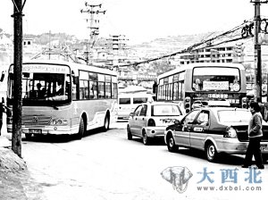庙滩子一带的交通拥堵问题,已经有多年的历史了,但近两年来显得尤为突出。就拿上周来说,从周一至周五每天都在堵车。早晨堵,中午堵,晚上堵,堵得人心都发慌。在庙滩子,堵车已不是新闻,不堵车倒成了新闻。有一天,记者乘坐公交车路过庙滩子正庆幸没有堵车,邻坐一位不认识的乘客居然转头问道:“奇怪,今天居然没有堵车?”